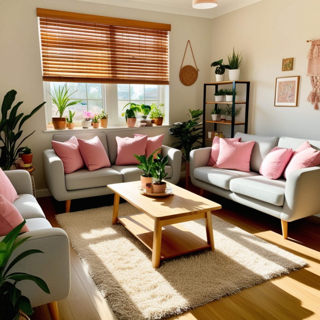 - Incorpora plantas pequeñas o medianas en esquinas o mesas auxiliares — aportan color, frescura y vida.